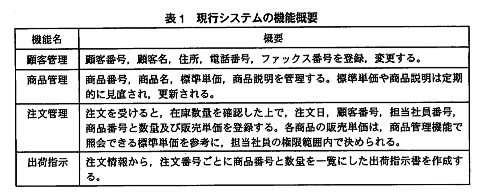 S社は、園芸用品の製造及び販売を行う中堅企業である。顧客である農家やホームセンターから電話やファックスで注文を受け、注文管理システム(以下、現行システムという)で管理している。現行システムの機能概要を表1に、E-R図を図1に示す。