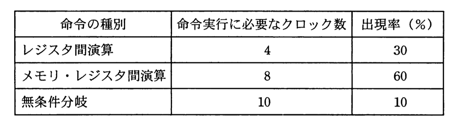 - 根拠:命令ごとのクロック数と出現率から平均クロック数を求め、クロック周波数を割ることでMIPSを算出する。
