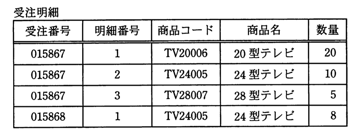 受注明細表の主キーは「受注番号+明細番号」の複合キーです。
