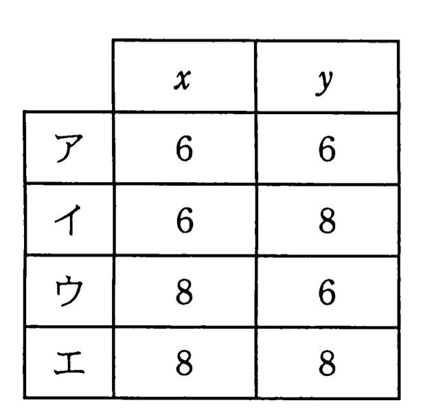 - 結果x=6、y=8を選択肢と照合し、イを選ぶ。