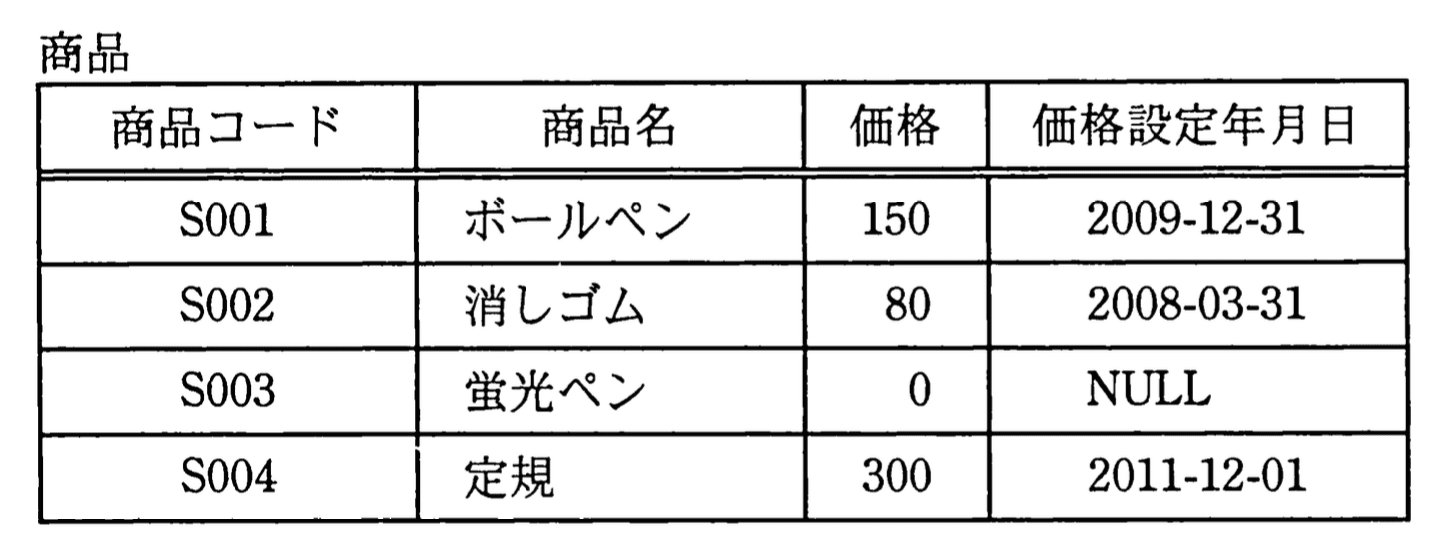 価格設定年月日にNULLを含む“商品”表に対する問合せ【午前2 解説】