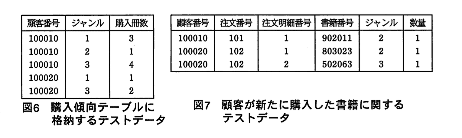 図6は[手順2]の結果として“購入傾向テーブル”に格納するテストデータである。
