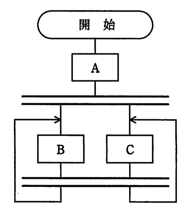 - 二重線を単なる分岐と誤解し、BかCのどちらか一方だけが実行されると考える。
