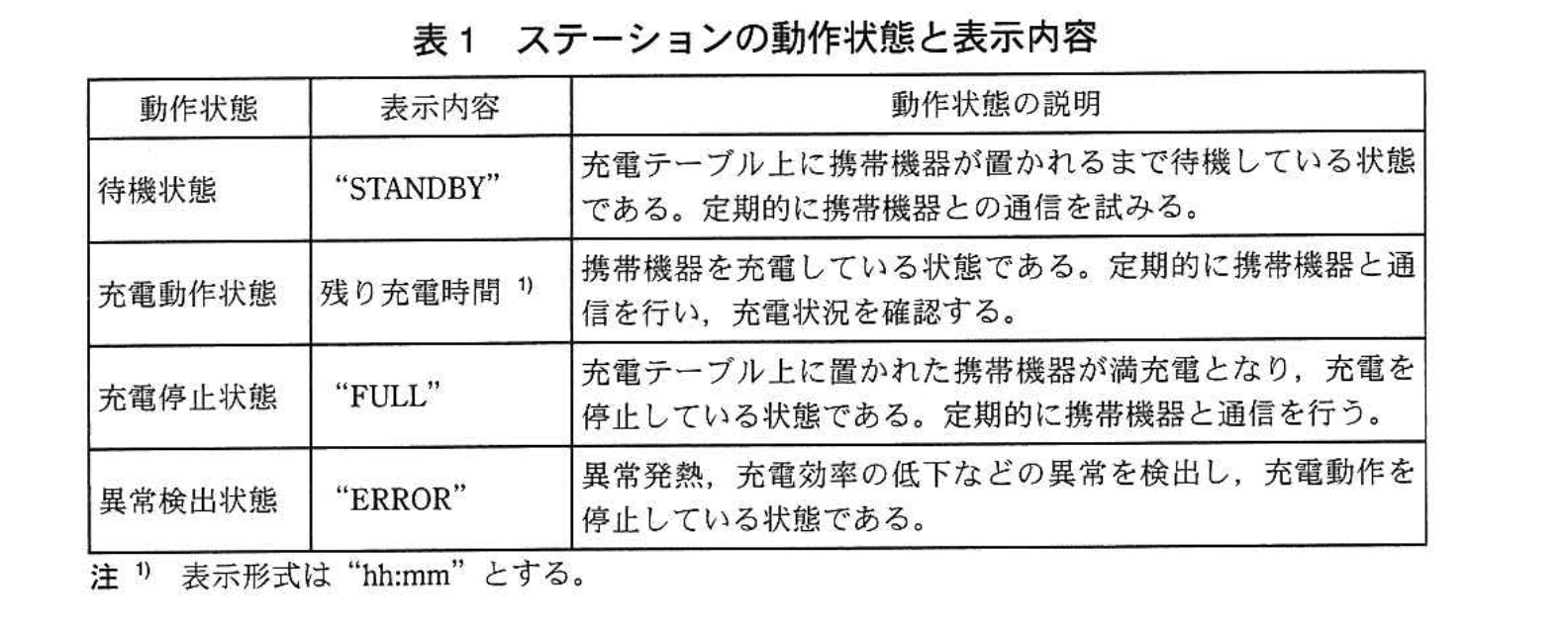 - 【問題文】の通り、メインタスクでは①条件で“STANDBY”を表示するかどうかを決めています。待機中とは「充電テーブル上に携帯機器が置かれるまで待機している状態」(表1「待機状態」の説明)です。