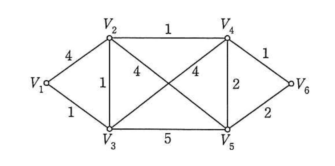 グラフに示される頂点からの各点への最短所要時間を求め、短い順に並べたものはどれか。ここで、グラフ中の数値は各区間の所要時間を表すものとし最短所要時間が同一の場合には添字の小さい順に並べるものとする。