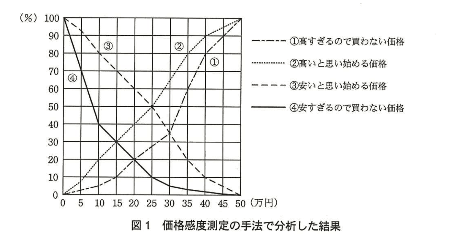 ・「安すぎるので買わない価格」と「安いと思い始める価格」が交差する最小許容価格付近