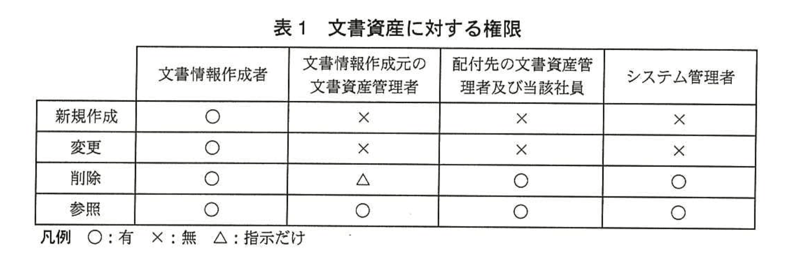 ・さらに、表1の権限一覧でも “新規作成”“変更”“削除”“参照” といったアクセス制御を示しており、これらを総称して “アクセス権” と呼びます。