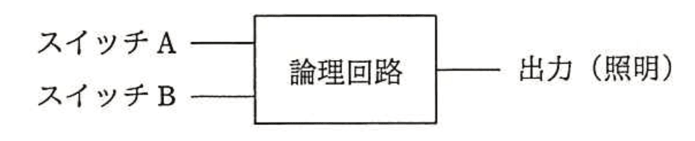 階段の上下にあるスイッチ A又はBで、一つの照明を点灯・消灯する。すなわち、一方のスイッチの状態にかかわらず、他方のスイッチで照明を点灯・消灯できる。