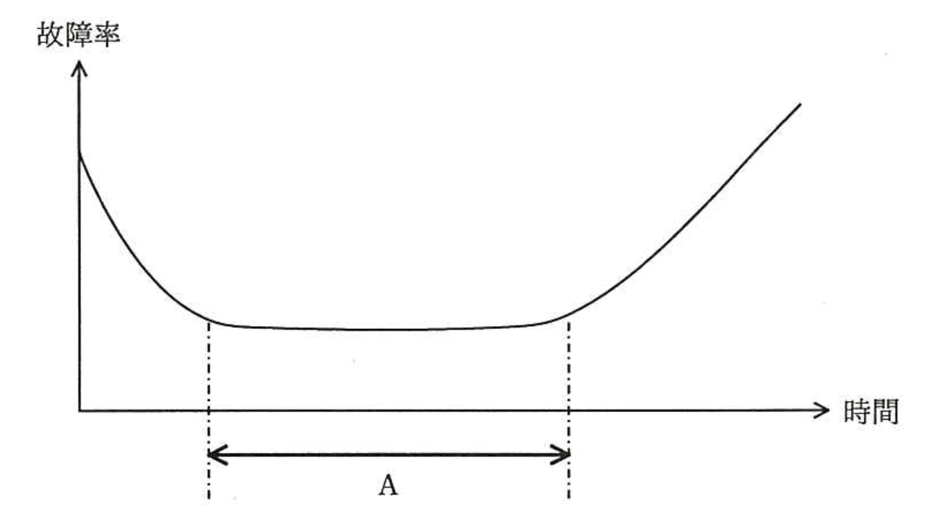 - 結論:Aの期間は「偶発故障期」であり、予備部品の準備など偶発的故障に備える対策が必要です。