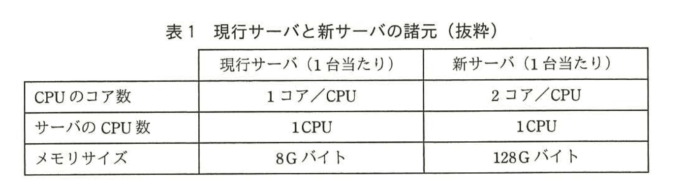 「新サーバのメモリの読み書き速度は、現行サーバの2倍速い」