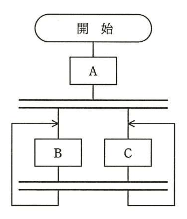 - 結論:この流れ図は、Aの処理後にBとCが並列で実行され、両者の同期を取りながら繰り返す動作を示しています。