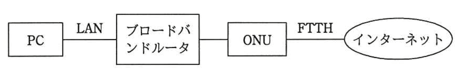 - 根拠:LANの伝送速度は100Mビット/秒×伝送効率80%=80Mビット/秒、FTTHの実効速度90Mビット/秒よりLAN速度がボトルネック。