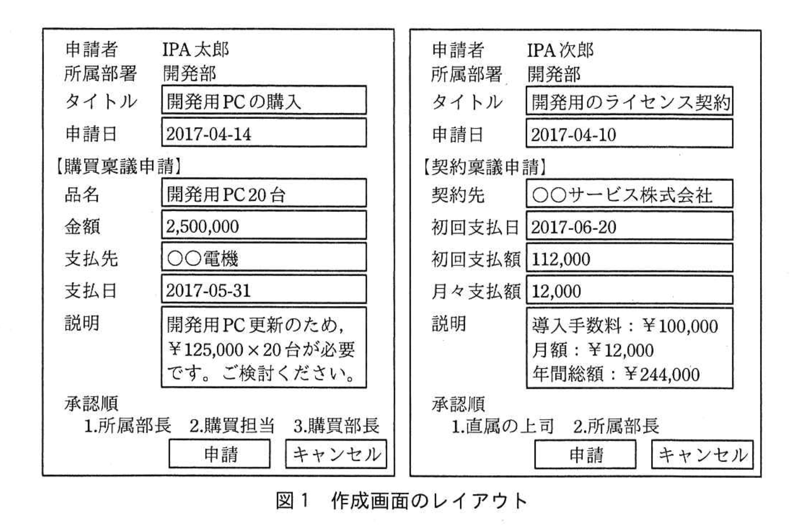 “購買稟議申請の書式IDは'購買'、契約稟議申請の書式IDは'契約'である。”