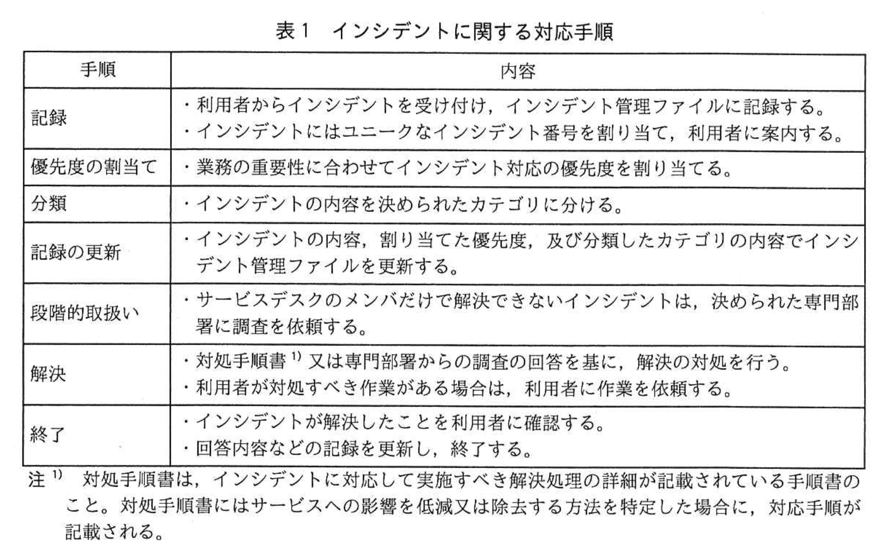 関連キーワード: インシデント管理, サービス要求, 中断, 品質低下, 優先度