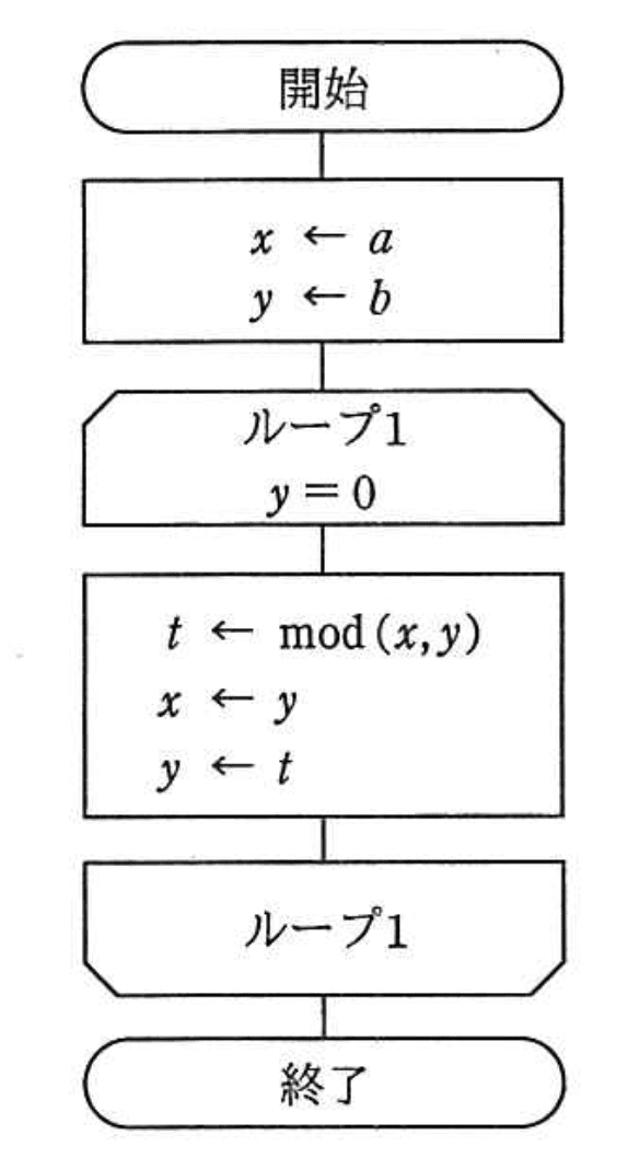 - 根拠:流れ図はユークリッドの互除法を実装しており、とに余りを繰り返し代入しているため。