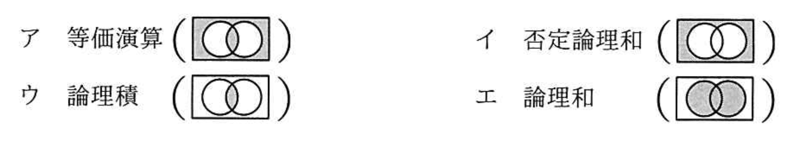 任意のオペランドに対するブール演算 Aの結果とブール演算 Bの結果が互いに否定の関係にあるとき、AはBの (又は、BはAの)相補演算であるという。排他的論理和の相補演算はどれか。