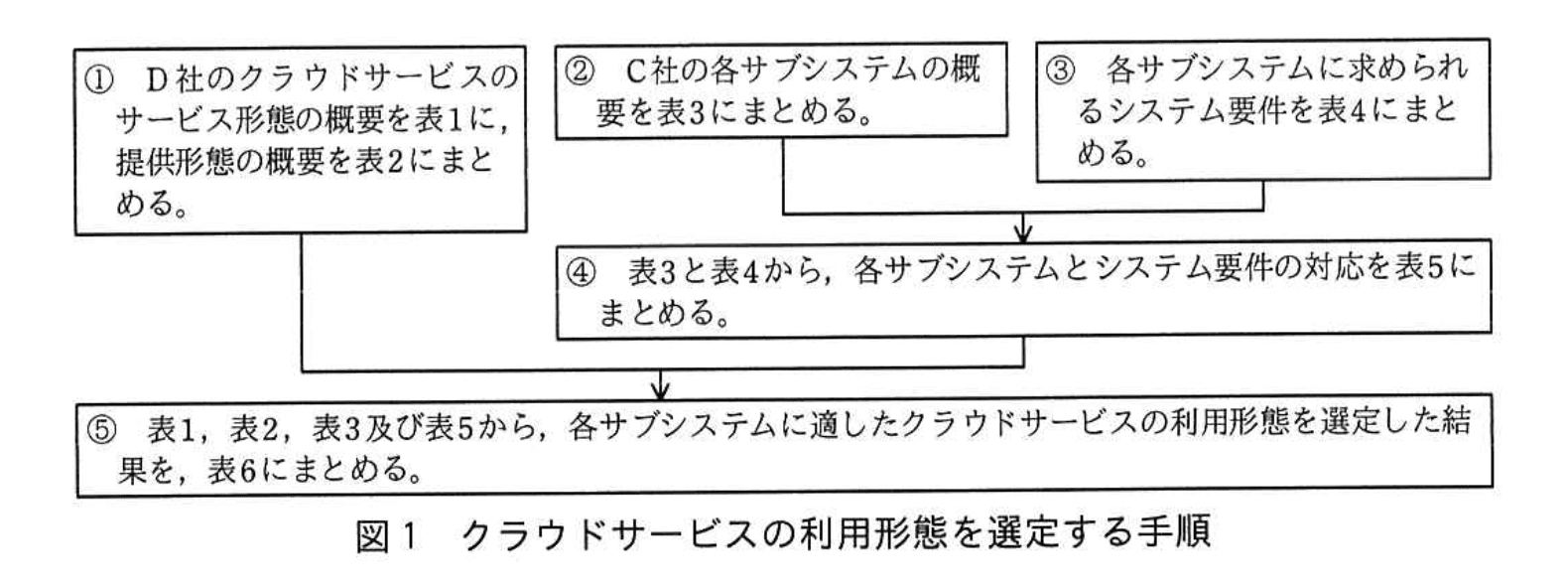 F課長は、クラウドサービスの利用形態を選定する手順を図1のように決定した。