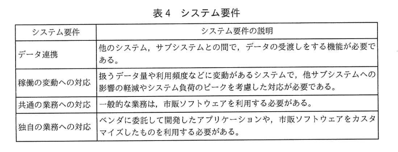 次にF課長は、各サブシステムに求められるシステム要件を表4にまとめた。