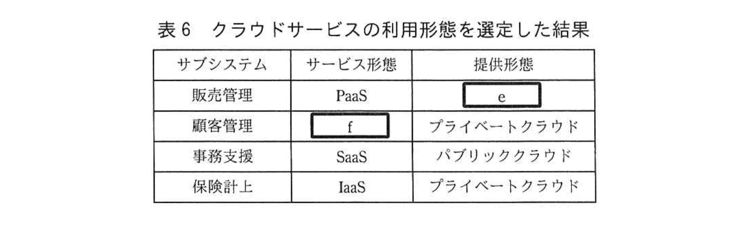 表6は、F課長がクラウドサービスの利用形態を選定した結果である。