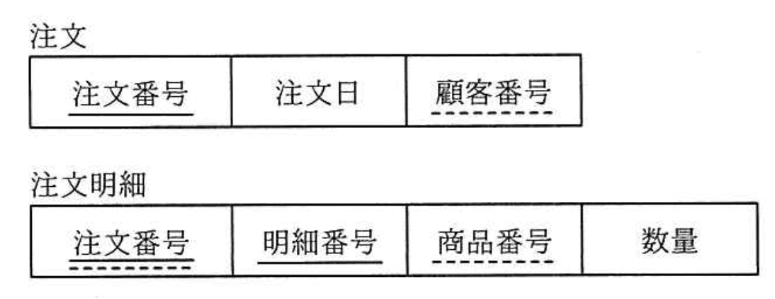 - 問題文から「注文」表が親、「注文明細」表が子テーブルであることを確認する。