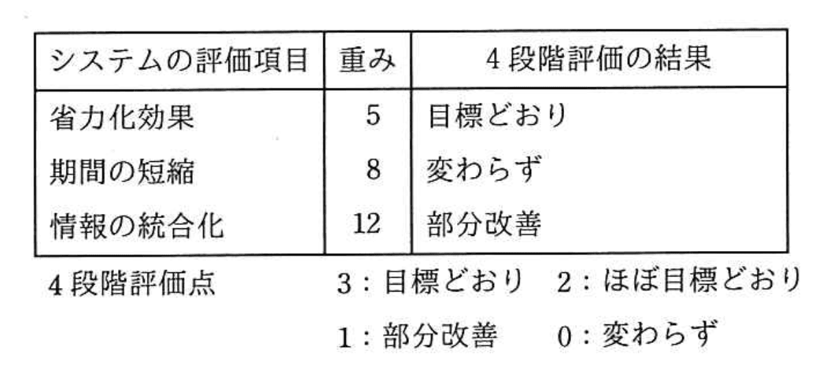 関連キーワード: 定性的評価、定量化、4段階評価、重み付け、目標達成度、システム評価