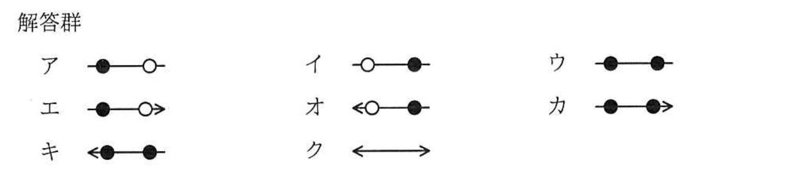 解答群ア ●─○(水平直線、両端は線のみで矢印なし)