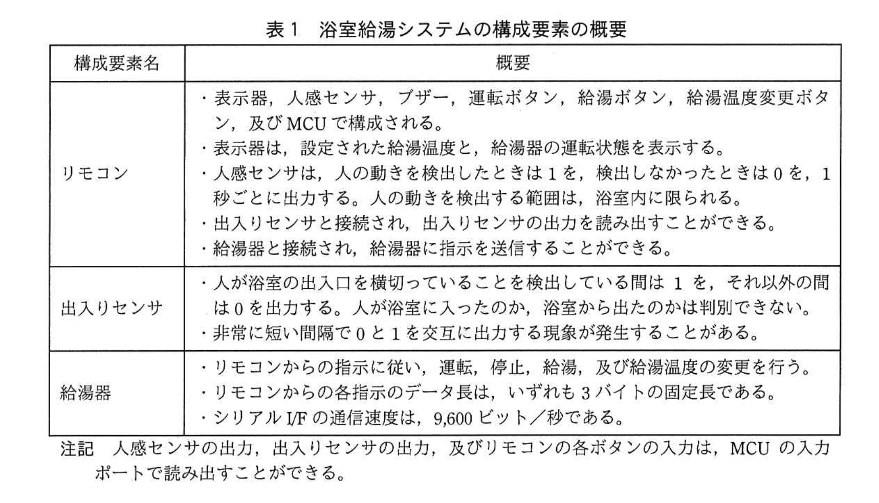 ・「人感センサの出力が 1 であれば、人が浴室に入ったと判定する。」