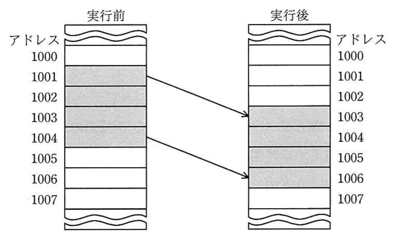- 重なりがあれば、転送方向を決める。重なり部分が上書きされないように後ろから前へ転送する。