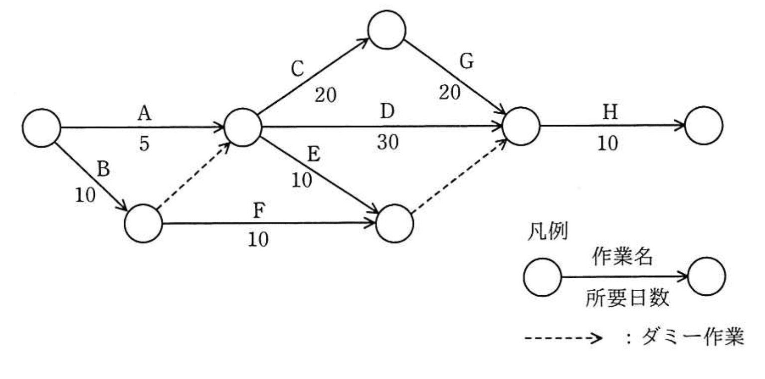 関連キーワード: アローダイアグラム、クリティカルパス、総余裕時間、ダミー作業、プロジェクト管理