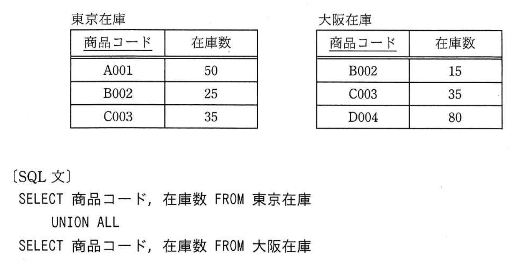 の意味を確認する。 - 東京在庫表と大阪在庫表の全行を単純に結合することを理解する。