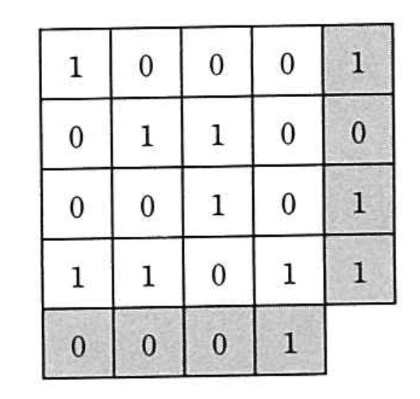 - 4×4のデータビットに行パリティビットを各行の末尾に付加する。