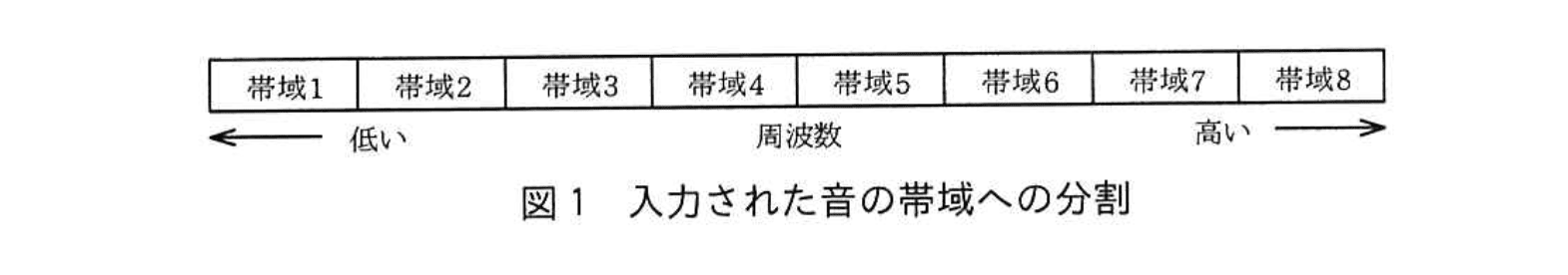 - 「① サンプリングしたデータから一つの帯域を抽出し…これを八つの帯域に対して行う。」