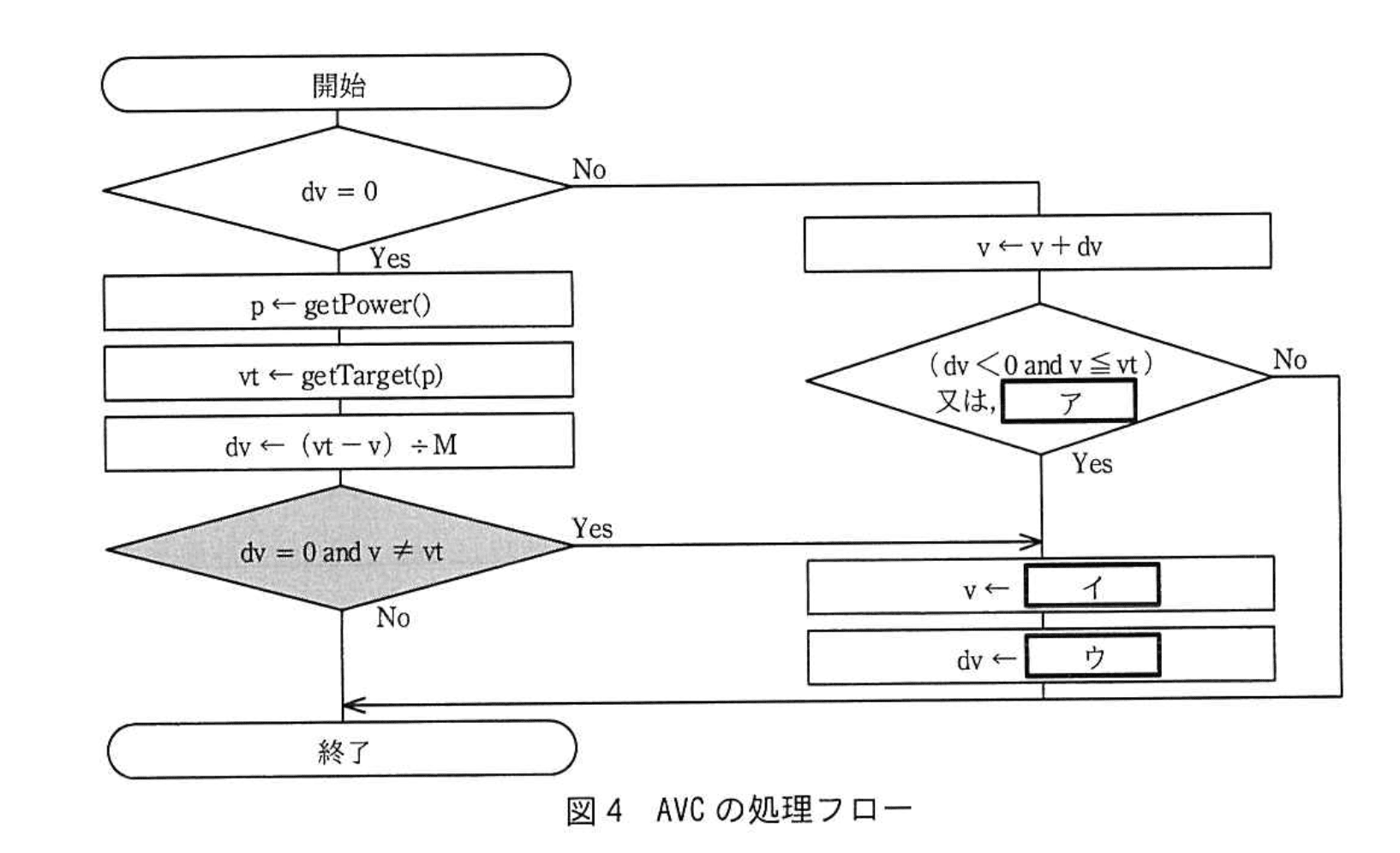 設問3:AVC処理のソフトウエアについて、〔1〕、〔2〕に答えよ。