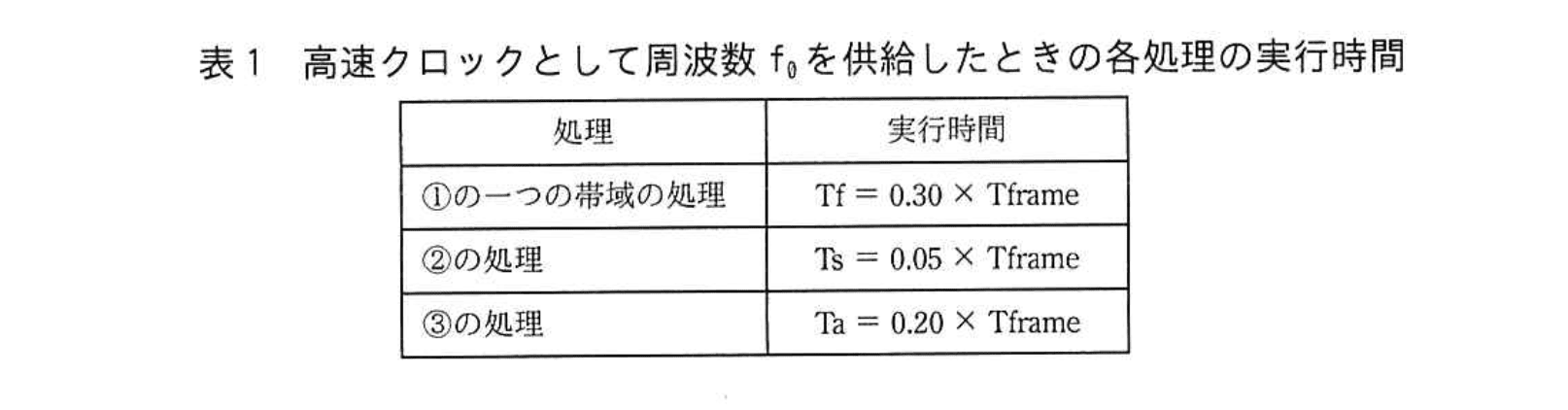 関連キーワード: 整数倍クロック, フレーム処理時間, 逆比例関係, 電力最適化, デジタル信号処理