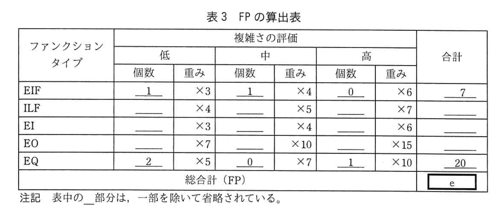 FP 法はまず規模を求める手法であり、工数は規模を変換して初めて算出できます。 - 漢字2字への置換ミス
