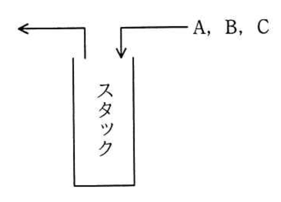 - 入力順ABCを順にスタックに入れる操作を考える。