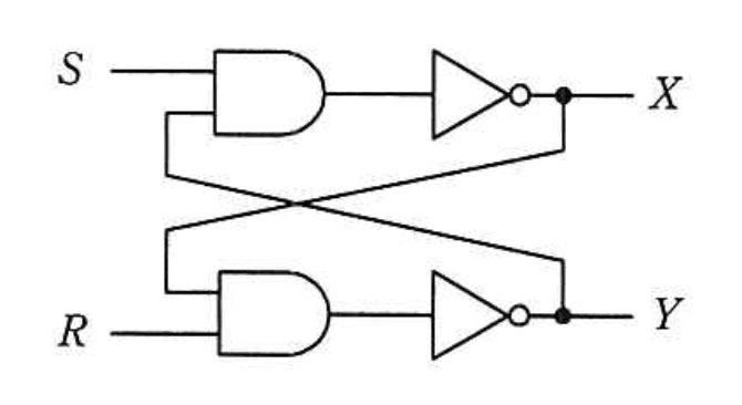 - 根拠:この回路はSRラッチの構成で、SとRの入力変化によりXとYが相互に反転しながら状態を保持します。