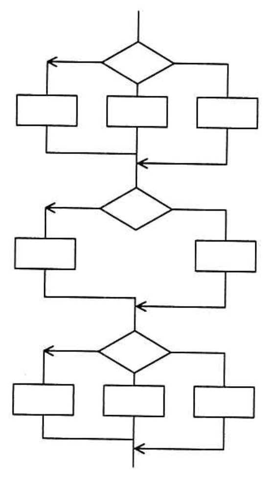 問題の流れ図は3つの判断ノードがあり、それぞれ3本または2本の分岐がありますが、命令網羅では各判断ノードのすべての分岐を通る必要はありません。