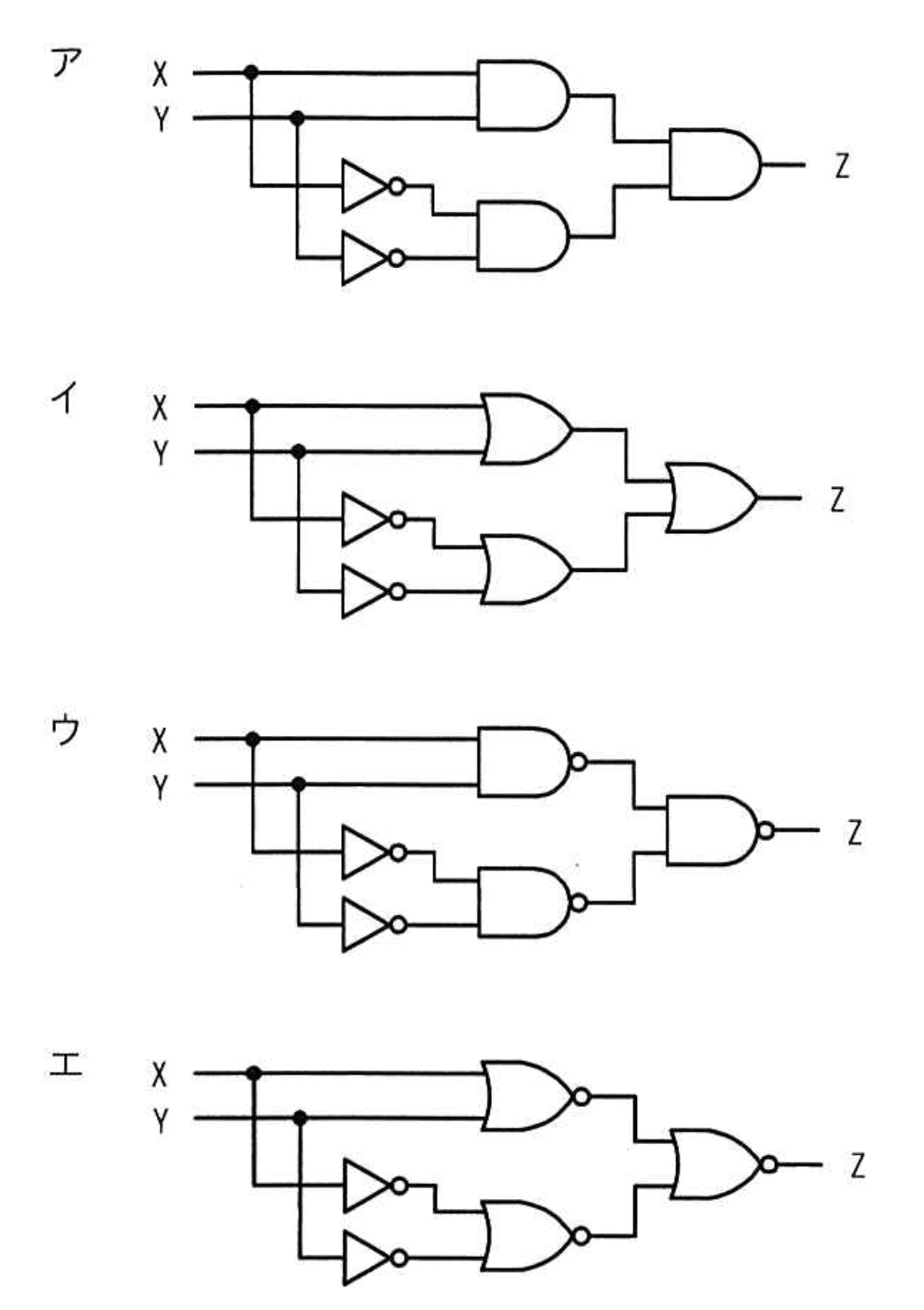 入力XとYの値が同じときにだけ、出力Zに1を出力する回路はどれか【午前2 解説】