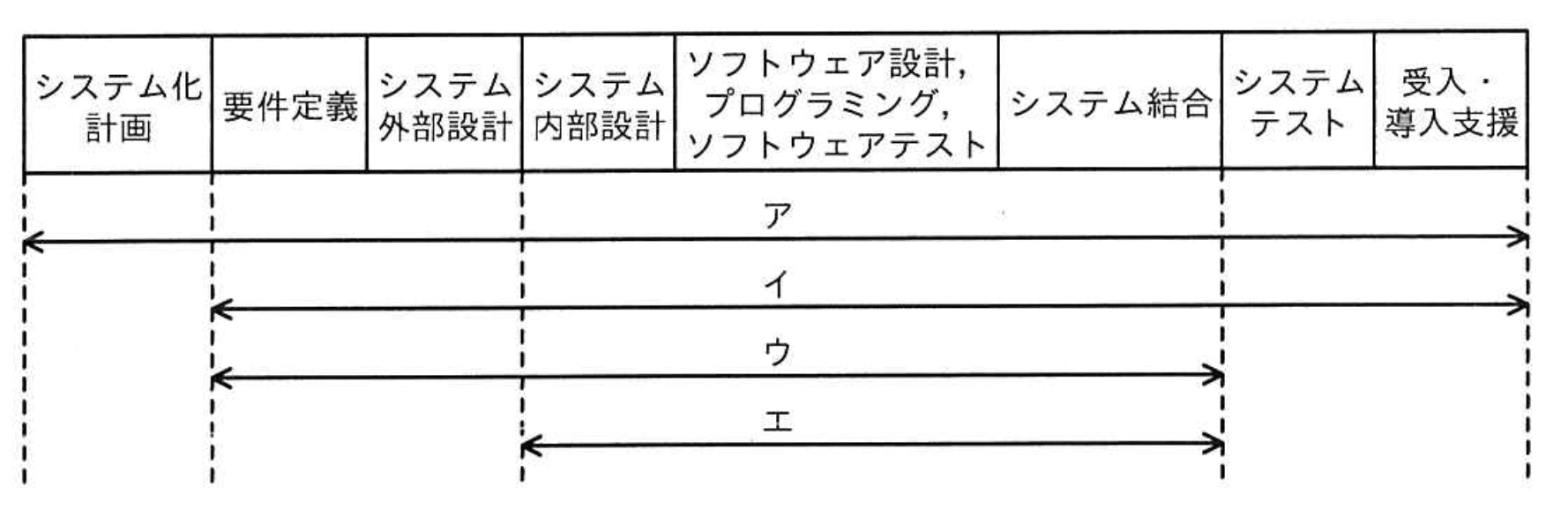 - ウ:要件定義からシステム結合まででは、要件定義の段階が含まれ請負契約の適用としては早すぎます。