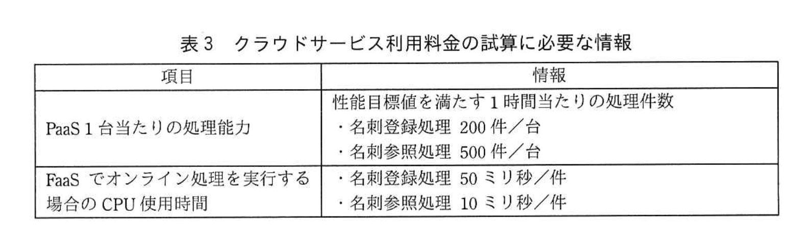- 【表3】「PaaS 1台当たりの処理能力…・名刺参照処理 500件/台」