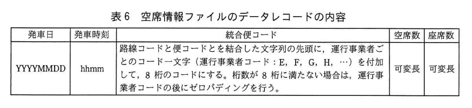 空席情報ファイルのデータレコードの内容を表6に示す。