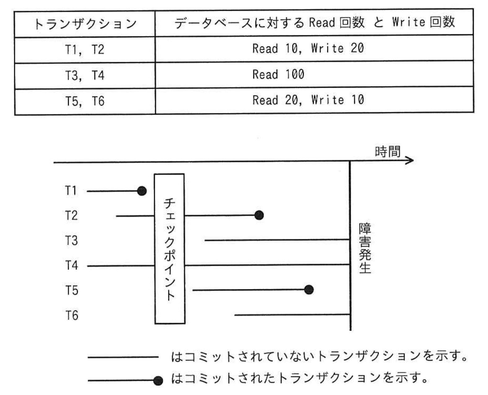 - チェックポイント前に終了したトランザクションは復旧対象外とする。