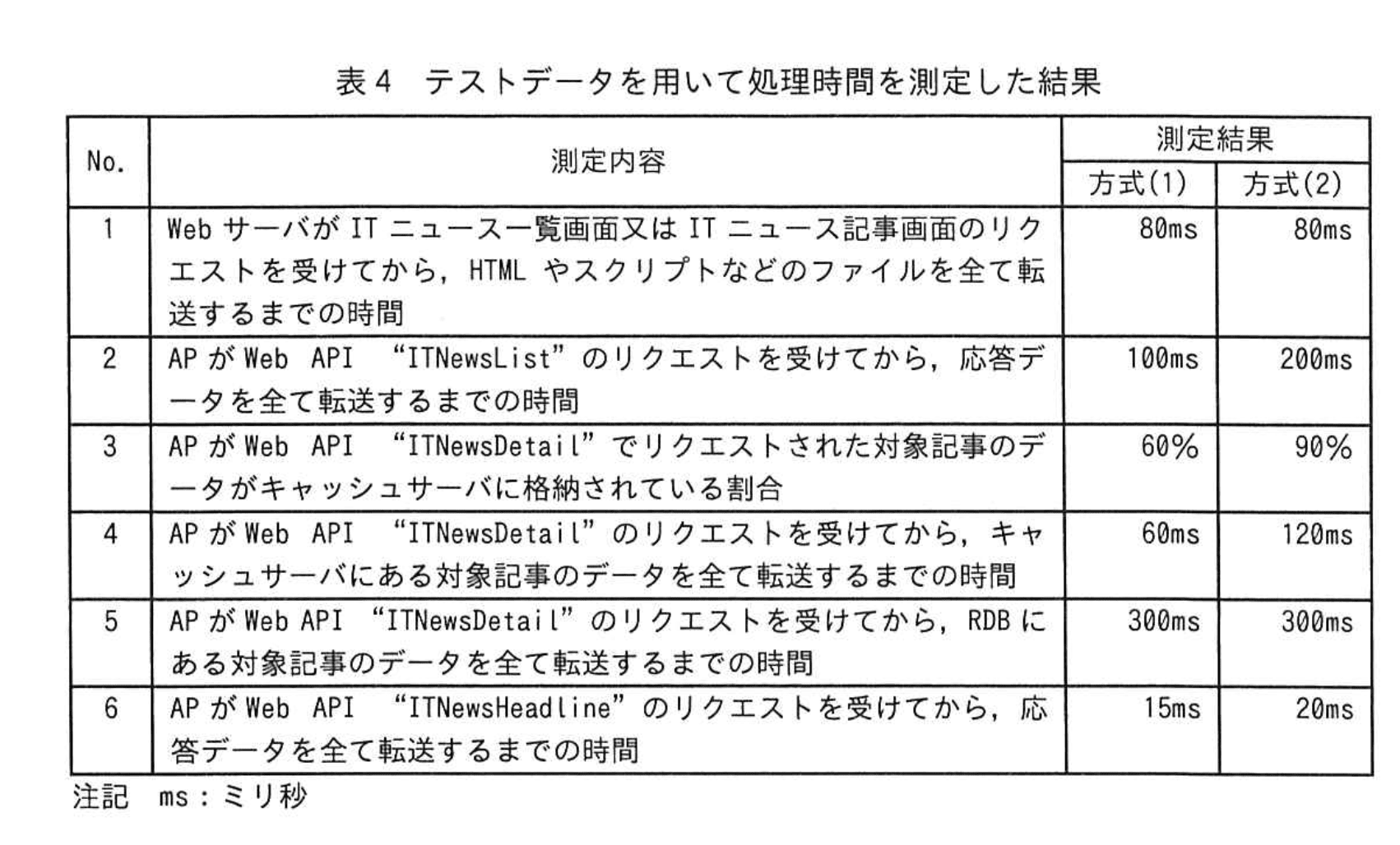 - “ITNewsHeadline” は 6 件、No.6 方式(1)「“15ms”」より方式(1)は ms