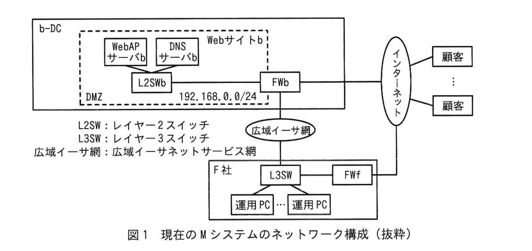 現在のMシステムのネットワーク構成(抜粋)を図1に、DNSサーバに登録されているAレコードの情報を表1に示す。