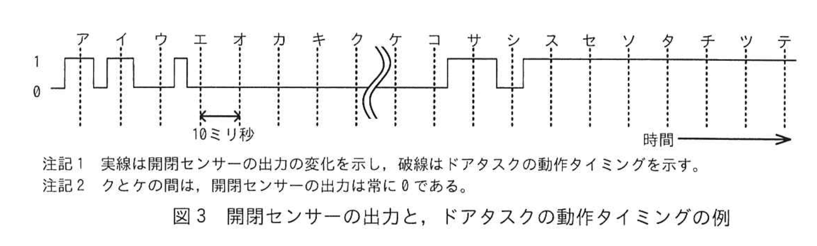 - ここで開状態が確定し、次の読み取りで通知。図3ではその通知位置が タ。