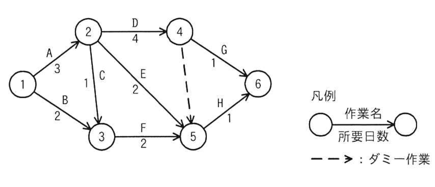 関連キーワード: アローダイアグラム、クリティカルパス、プロジェクト管理、ダミー作業、最早結合点時刻