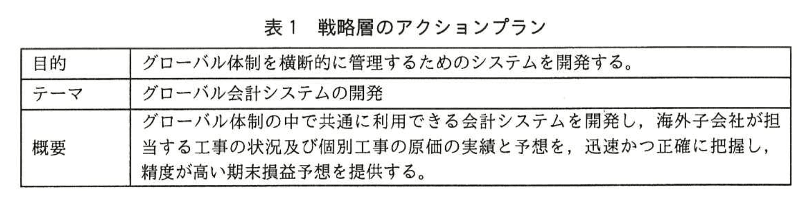 これらの点から、本社、海外子会社及び建設現場が関わる設計、調達、工事の状況を全体的に把握し、様々な情報から、海外工事の損益予想を正確に行う必要があり、そのための仕組みづくりが課題となっている。