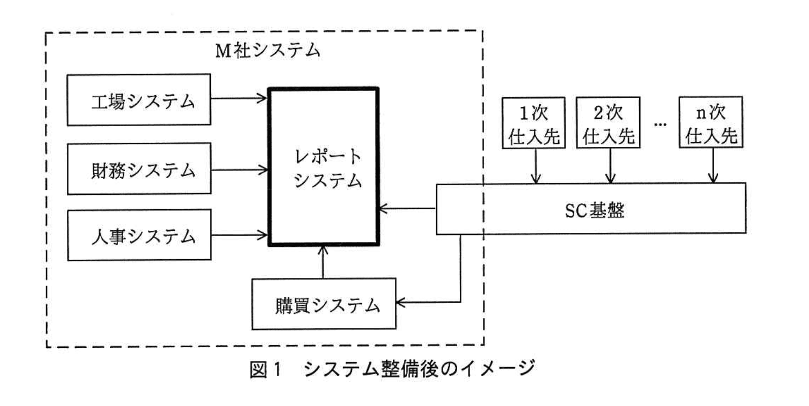 A: レポートシステムは「SC 基盤のデータを参照」しますが、サプライチェーンマトリクスは購買システム側の機能です。直接の連携相手は工場・財務・人事システムと SC 基盤になります。