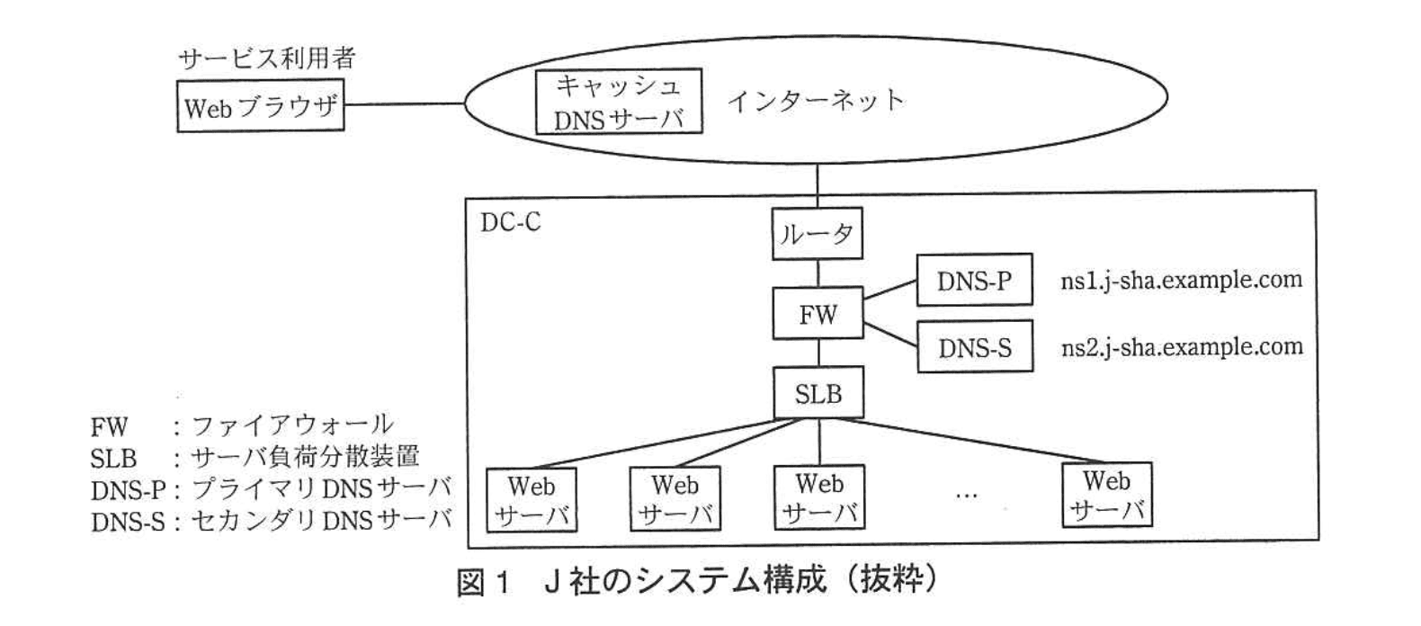 ――「DNS-P と DNS-S は、J社のドメインを管理する DNS サーバであり」
